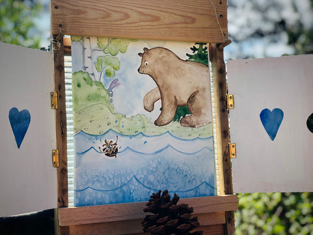 The theater was ready in autumn, I used it couple of times during the winter and only in the end of spring I have set it on my bike. It was a joyful to ride with with kamishibai on my bike and then stop and tell the children story, using the pictures. Art and biking, the things I love, united in this project.